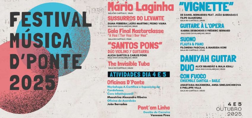 O Festival Música d´Ponte realiza-se nos dias 04 e 05 de outubro no Mosteiro de São Martinho de Tibães.